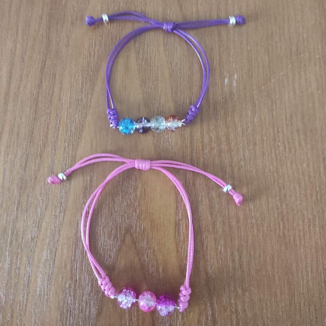 Pulsera con entrepieza con bolas de colores de cristal checo y cierre de nudo corredizo